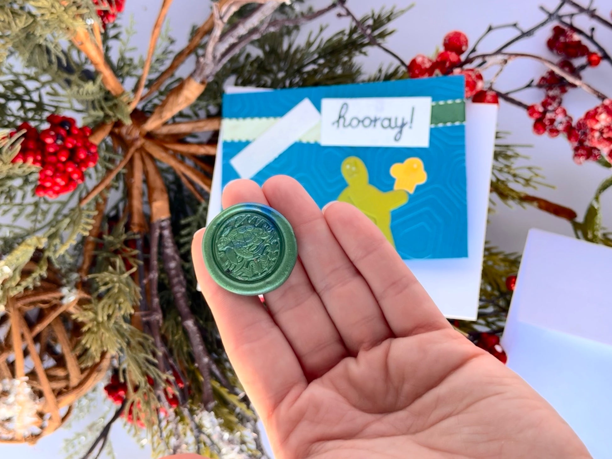 Your kit also includes a Sea Turtle Wax Seal, featuring a marbled blend of deep blue and deep green, perfectly complementing the coastal feel of the designs.